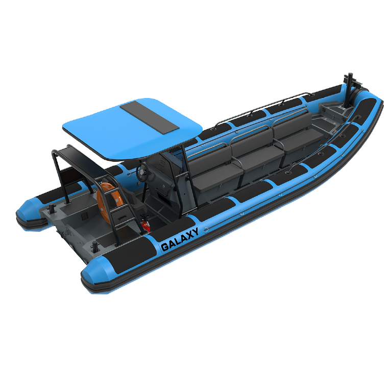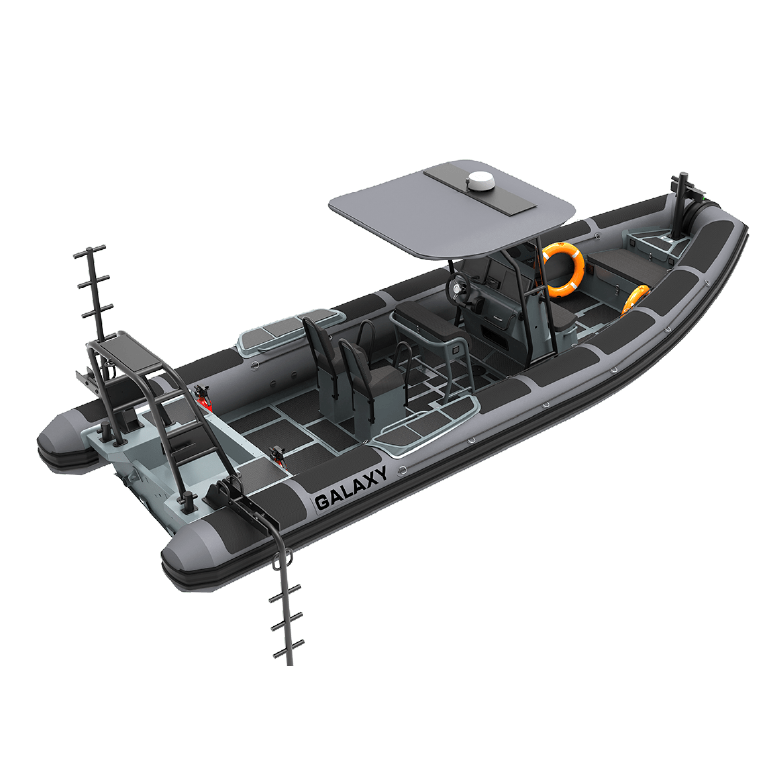GALAXY Pilot P8 on suurim keskmise suurusega professionaalseks kasutamiseks mõeldud alumiinium korpusega RIB paat pikkusega 780 cm (25’7”).