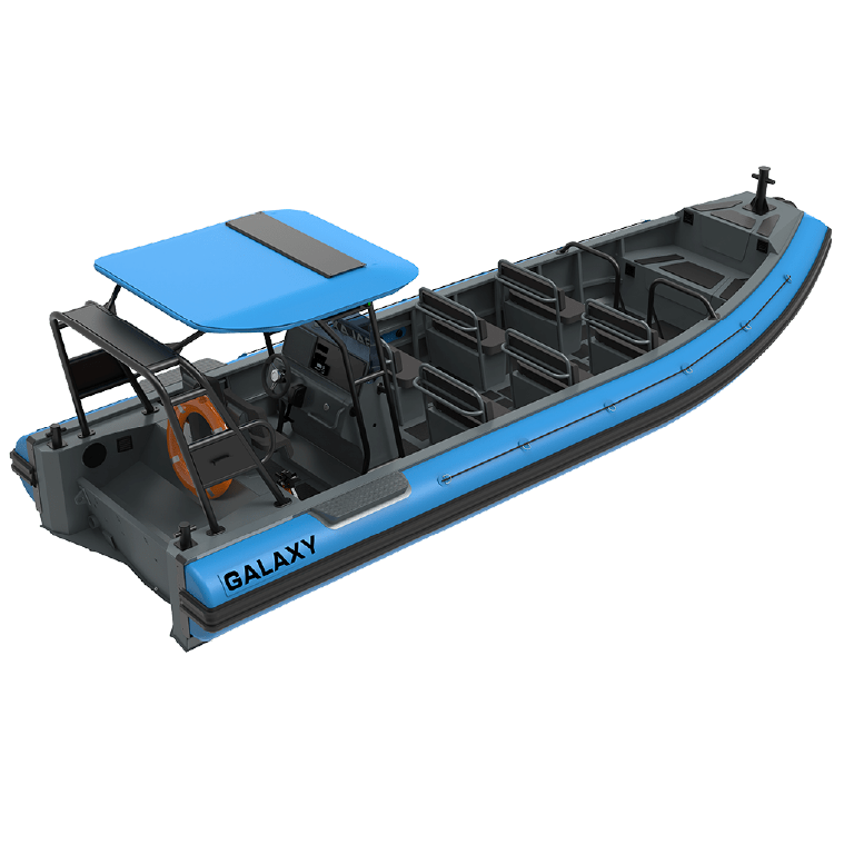 GALAXY TRIDENT T8 on esimene GALA professionaalse varustuse seeria täiustatud tootesarja üks arenenumaid paate, mis on loodud kõige nõudlikumate töötingimuste jaoks. See paadiseeria on tuntud oma innovatsiooni ja võime poolest kohaneda erinevate väljakutsetega. Tehes sellest kõrgeimatele standarditele suunatud kõige nõudlikumate ülesannete jaoks, nagu patrulli, õiguskaitse, eri- ja ärioperatsioonide valdkonnas.